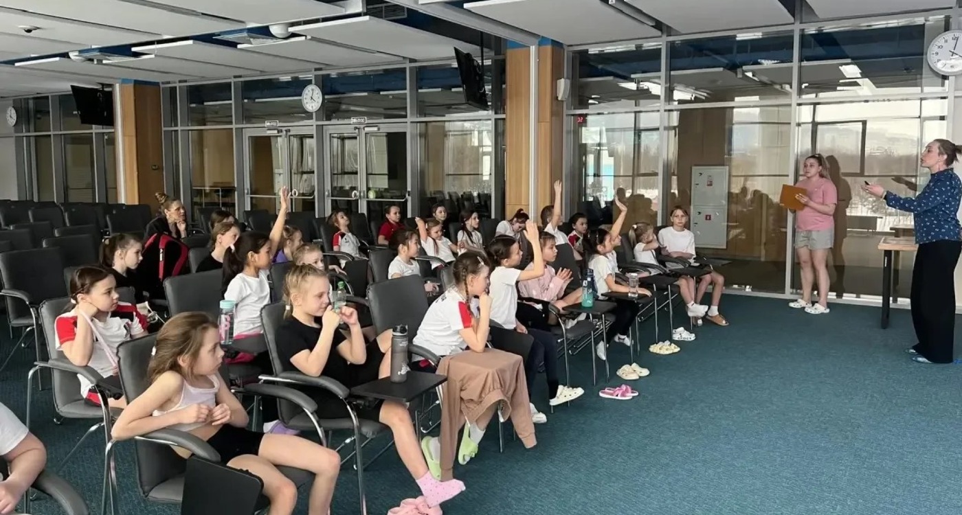 На встрече - воспитанникам отделения синхронное плавание, рассказали о том, что такое - ценности спорта, ценности и принципы олимпизма.